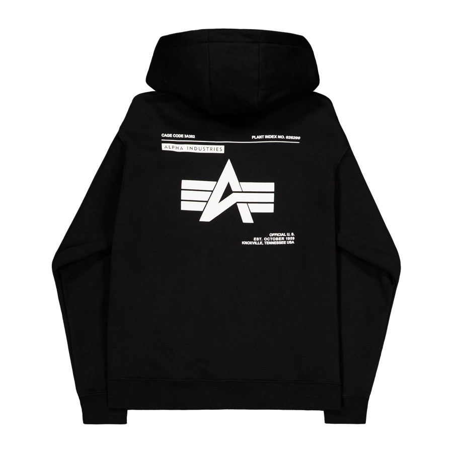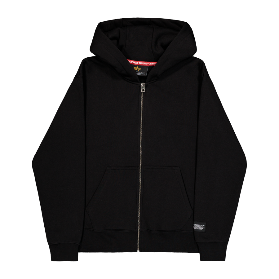 Label Zip Back Print Hoodie - black